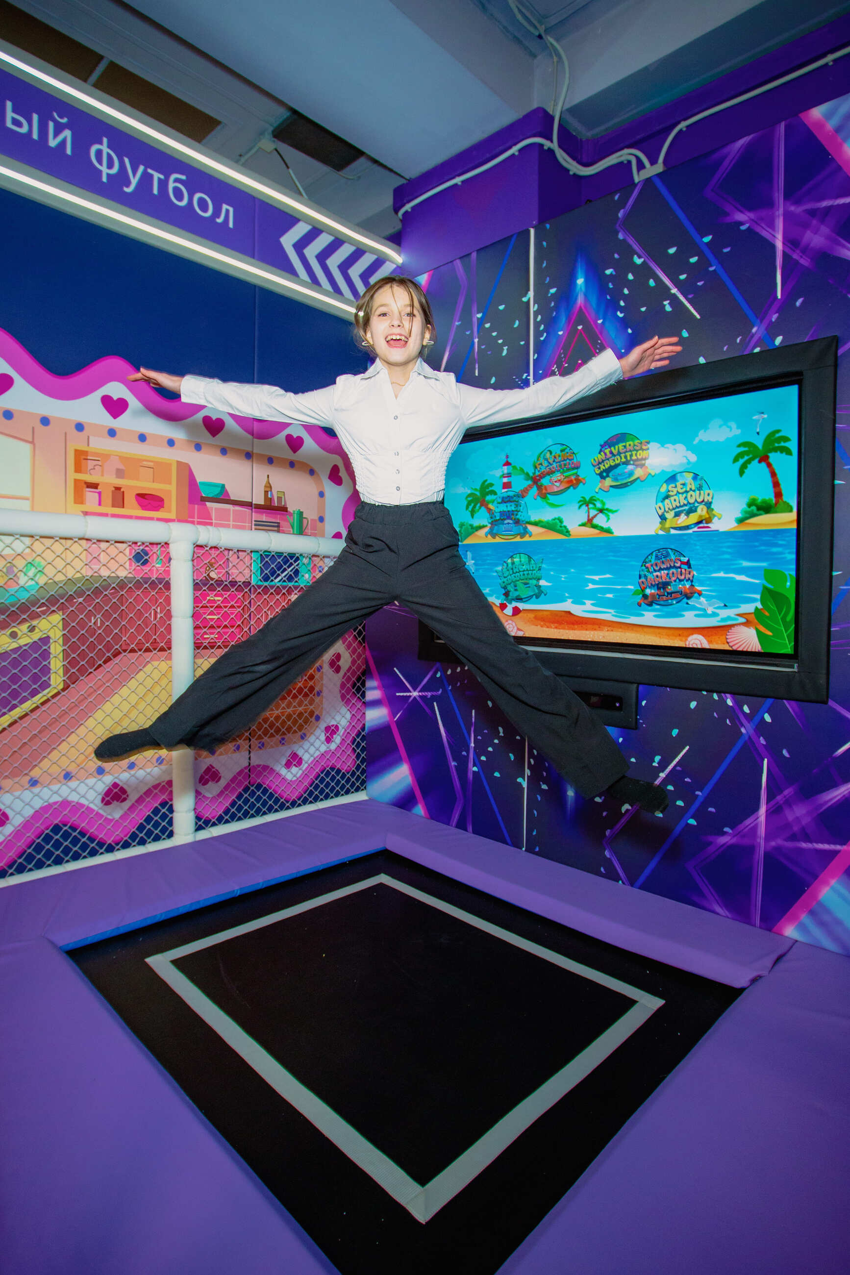 Твой прыжок — это часть игры! Прыгай на батуте и управляй персонажем на большом экране. Уникальный микс физической активности и цифрового приключения.